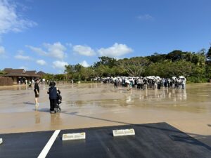 10月上旬はやはりまだ暑い。ゲートに並んでオープンを待つだけでもかなり体力を消耗する。