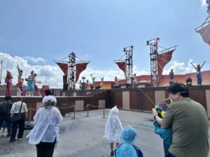 会場はパーク内のブリーズアリーナ(BREEZE ARENA)。平日は1日1回12:00、土日祝日は1日2回12:00と13:30に開催される(2025年10月の場合)約20分間のショーであるが、なかなか楽しいスプラッシュ体験が待っている。