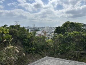 城跡は丘の上にあるため、周囲を見渡すと沖縄市の街並みが広がる。昔はこの場所から、海や周辺の集落を見渡すことができたのだろう。