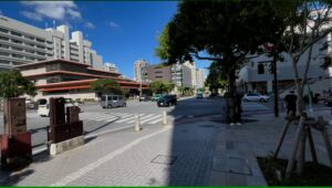 ゆいレールおもろまち駅~Tギャラリア沖縄byDFS横~サンエー那覇メインプレイス~県立博物館美術館~コープあっぷるタウン~天久りうぼう楽市~上之屋~天久小学校~新都心公園~おもろまち駅バス乗り場