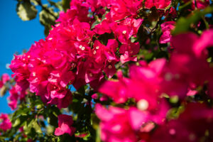 色鮮やかなブーゲンビレアが咲き誇る園内は、まさに花の楽園。日本最大級のブーゲンタワーや多彩なフォトスポットを巡りながら、ゆったりと散策を楽しむことができる。暖かな陽射しと青空に映える花々が、南国らしい開放的な雰囲気を一層引き立てている。